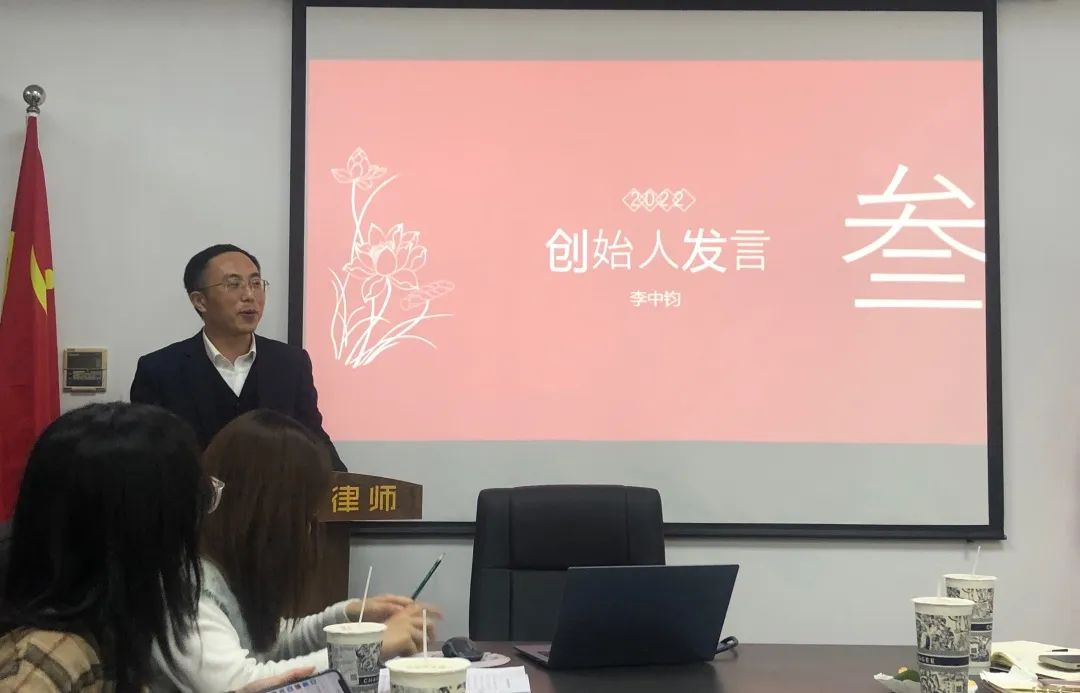 1月13日,浙江杭联律师事务所2022年度总结会议在本所会议室召开。本次会议分为年度总回顾、党支部代表发言、专职律师代表发言及律师工作总结等几个部分。 本次会议由李玲玉主持,并邀请到原创始合伙人李中钧律师参会。会议首先由孙嘉翎律师对过去一年的工作进行了回顾。李中钧律师在会上就新形势下律师的机遇与挑战分享了个人的感想,并对青年律师寄予厚望和祝福。
